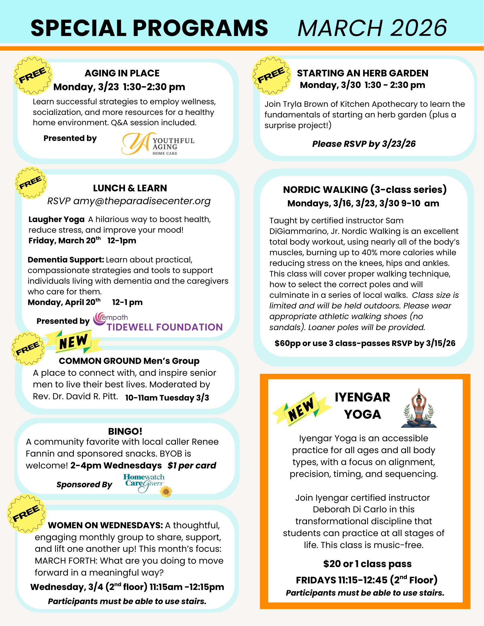 Click HERE for a printable copy of March Special Programs